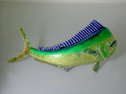Sterling Silver large ceramic color bull dolphin with .02ct emerald eye. Offered half round. Measures 2 1/8" wide. All items are custom made in the U.S.A.
