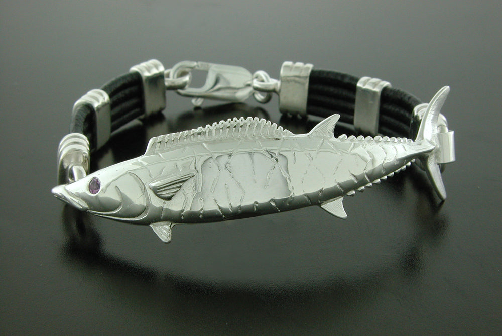 Sterling silver Wahoo black leather bracelet All items are custom made in the U.S.A.