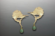 Sailfish Stud Earrings with 5.0mm black pearls