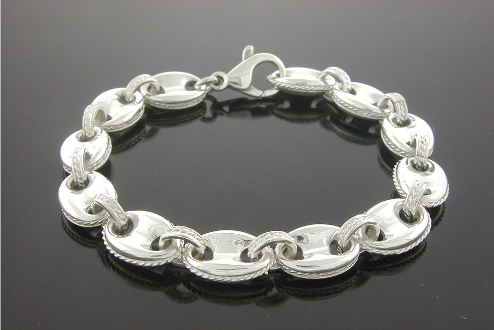 Large Sterling Silver Anchor Chain Bracelet 8" in length with lobster claw clasp. All items are custom made in the U.S.A.