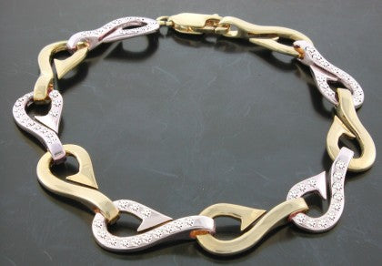 14K Yellow & White Gold set with 1.30ct. SI quality, H color Pave Diamonds. Comes in a standard 8.0" Length.This is a head turner. The design started out as a Men's style but, now it's more adorned on the feminine wrists. Leave the taste to the ladies. All items are custom made in the U.S.A.Â
