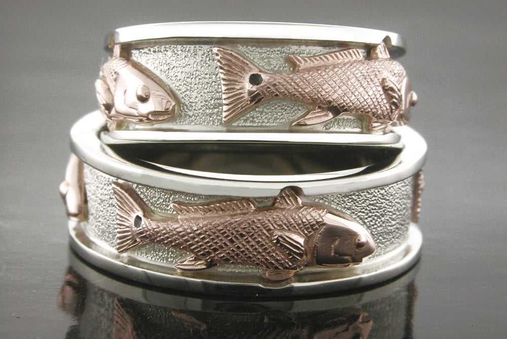 Customize your own 7mm Grand Slam Ring. You choose the details; we make it 100% personalized. Create your unique combination using your favorite sportfish and nautical elements. Scroll through photo gallery for a chart of all possible options. Need help with your ring size? Click here for an easy ring size tool.