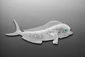 Sterling Silver large Mahi Dolphin Pendant with .02ct emerald eye.Offered half round. Measures 2 1/8" wide.