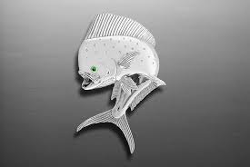 Sterling Silver large Mahi Dolphin twist Pendant with .02ct emerald eye. Offered half round. Measures 1.25" wide.