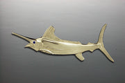 14K Yellow Gold Large Half Round White Marlin Pendant with .02ct. sapphire eye. Measures 2.25" long. Available in Yellow or White Gold All items are custom made in the U.S.A.
