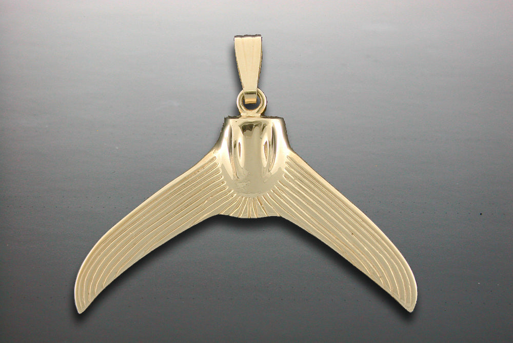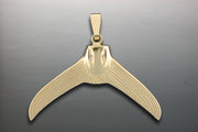 Large 14K yellow gold marlin tail pendant fully round 3-D. All items are custom made in the U.S.A.