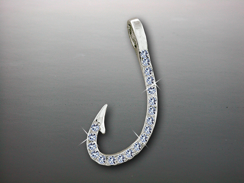 A beacon of health and prosperity, fish hooks are a radiant symbol of a bright future. This stunning diamond fish hook pendant shines with sophistication and bold simplicity. It's graceful curve is adorned with 1/3ct. stunning round VS, G-H quality pave set diamonds.