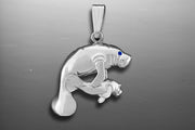 Sterling Silver Manatee & baby pendant with .01ct sapphire eye. This piece is fully round 3-D, detail on both sides. Measures 3/4" wide.