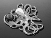 Limited Edition : Sterling Silver Large Octopus pin , pendant with .10ct. emerald eyes and an 11.0mm black Tahitian pearl. Limited edition of 150 to be sold. This pieces in number 3/150. Measures 2.5" at widest point. All items are custom made in the U.S.A.