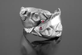 Sterling Silver Double Grouper Ring with .02ct. Ruby eyes. Size Chart All items are custom made in the U.S.A.