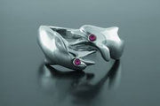Sterling Silver Double Porpoise Ring with (2)-.02ct ruby eyes. Size Chart All items are custom made in the U.S.A.