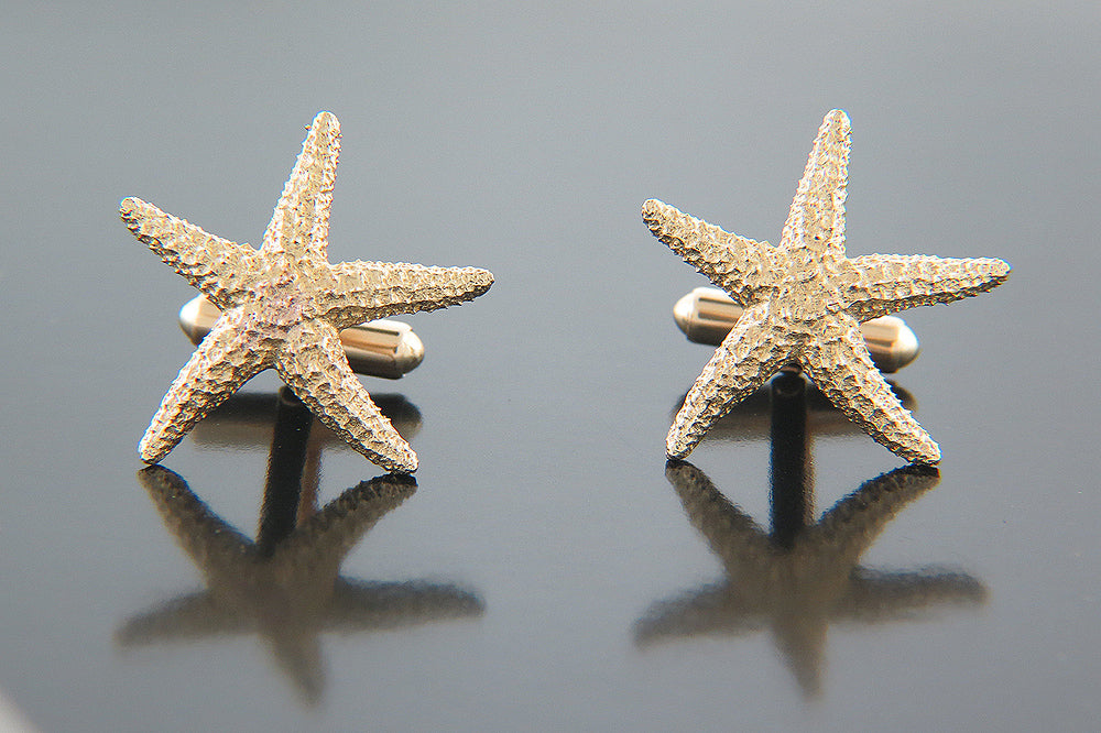 14K yellow gold cuff links.These are molded off real starfish so the realism can't be beat. Mother nature always makes them the best. Measures 1.0" wide and weighs 7.0 Dwt.