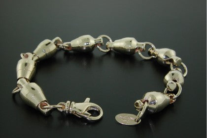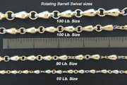 14K yellow gold #130 size rotating swivel bracelet with lobster claw clasp. Each swivel measures 5/8" from attaching ring to attaching ring. Offered in a 9" length. Available in Yellow or White Gold All items are custom made in the U.S.A.